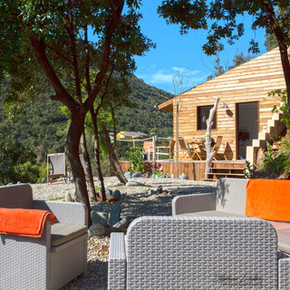 Entre mer et montagne, dans le Cap Corse, un petit nid en bois avec vue panoramique sur la montagne.